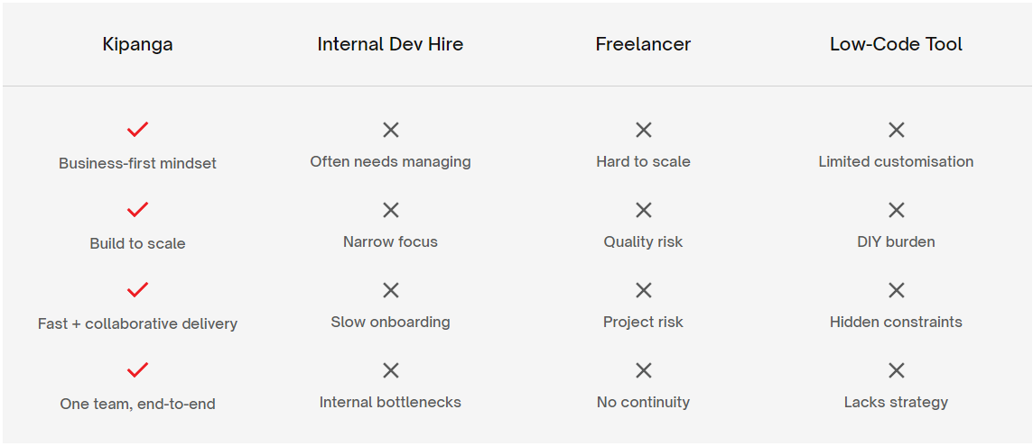 You don’t need code for code’s sake. You need systems that reduce manual work, support your growth, and flex with your business. That’s what Kipanga builds.