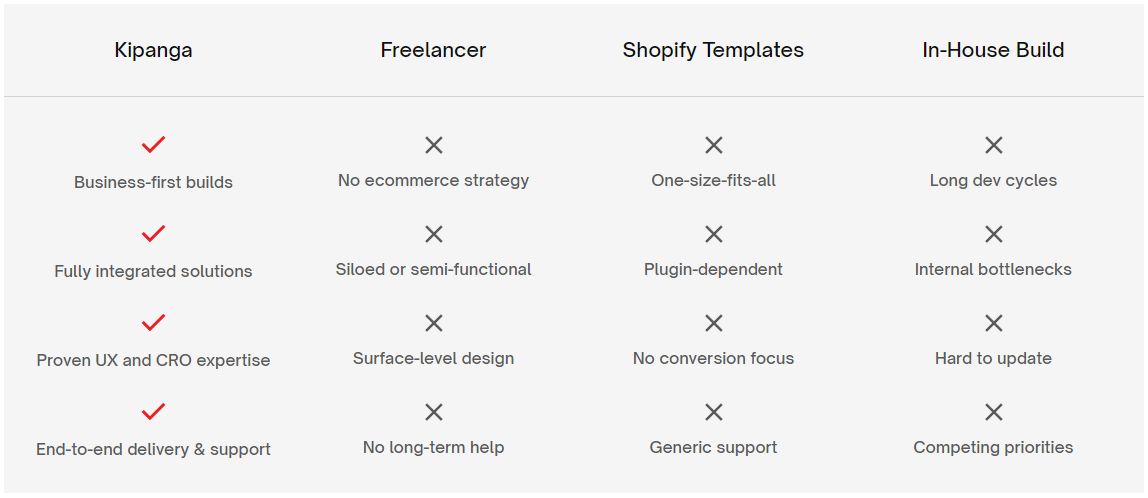 Kipanga stands out due to our tailored approach. We don’t offer one-size-fits-all solutions; instead, we create fully customised platforms that align with the specific needs of your business. From using platforms like Shopify, WooCommerce, and Magento to building completely bespoke solutions, our goal is to ensure your eCommerce site not only meets but exceeds your expectations.