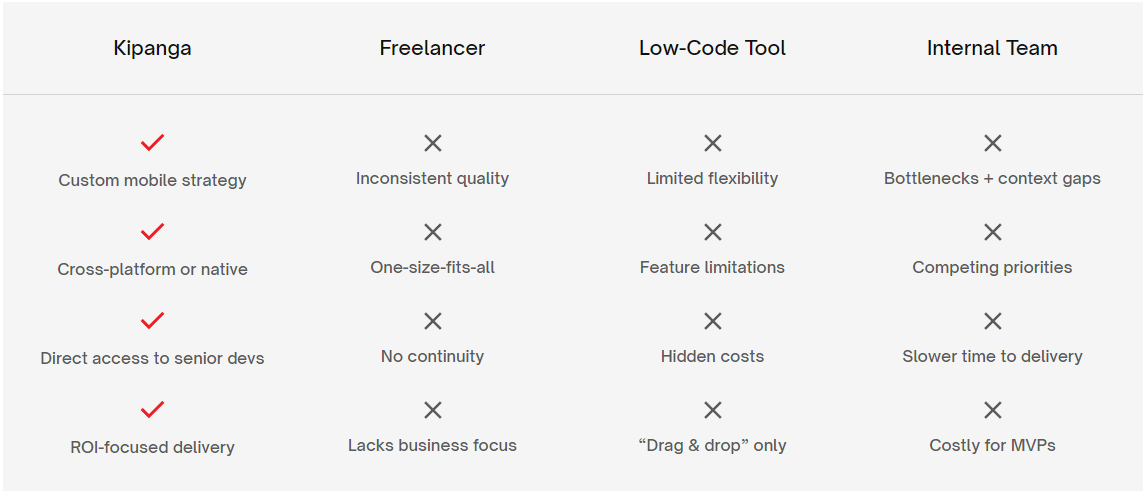 Kipanga builds custom mobile apps that power your business goals from day one - without compromise.