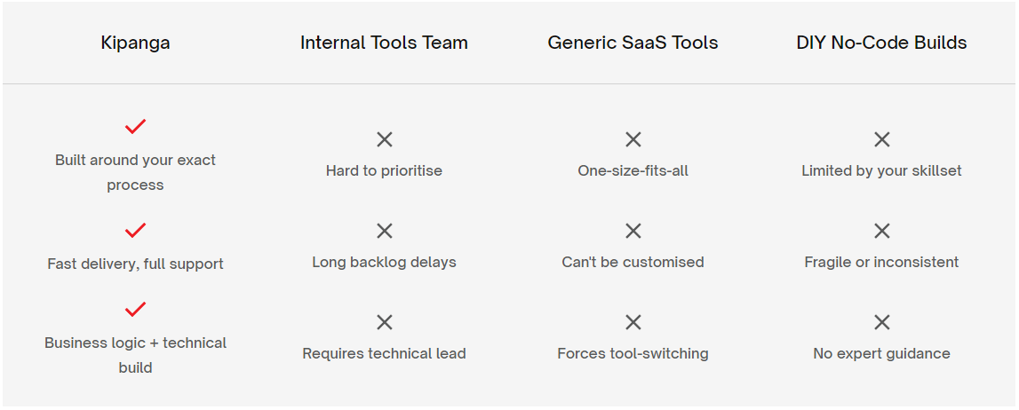 At Kipanga, we build systems that solve operational bottlenecks, eliminate admin, and help you scale without hiring.